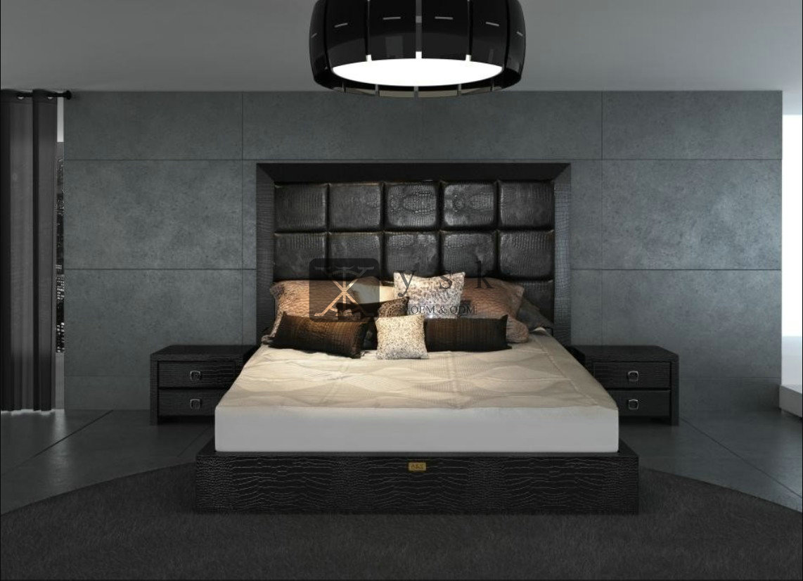BE-269 Hotel Contract Bedroom Furniture Single Queen King Size Modern Leather Bed