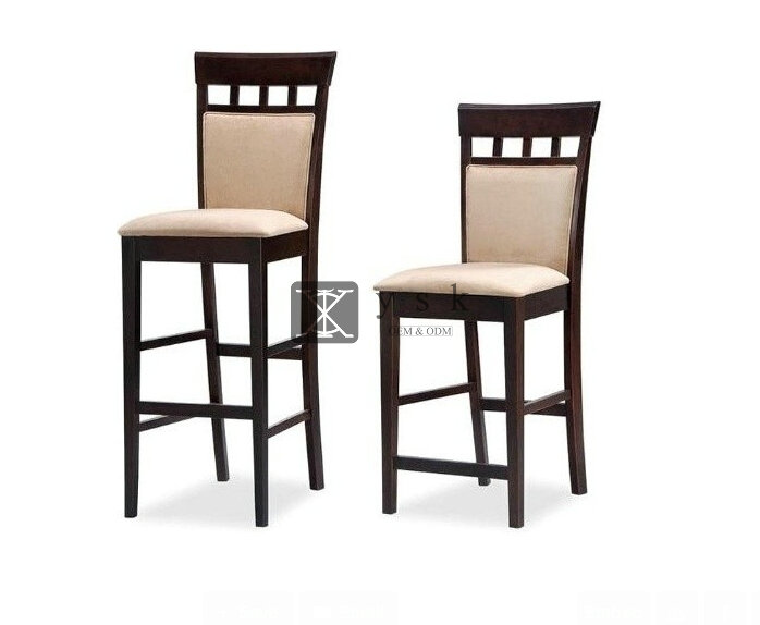 BC-334 High Quality Elegant Tall Bar Chair Dining Chair Fabric Antique Finish Solid Wood Chair