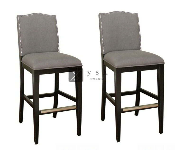 BC-334 High Quality Elegant Tall Bar Chair Dining Chair Fabric Antique Finish Solid Wood Chair