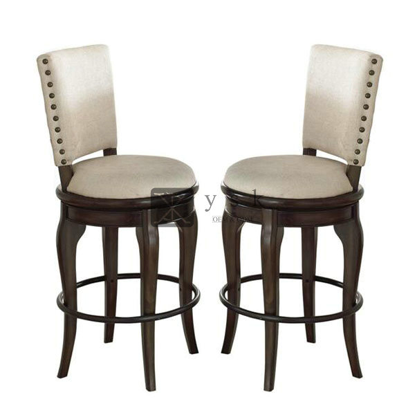 BC-334 High Quality Elegant Tall Bar Chair Dining Chair Fabric Antique Finish Solid Wood Chair