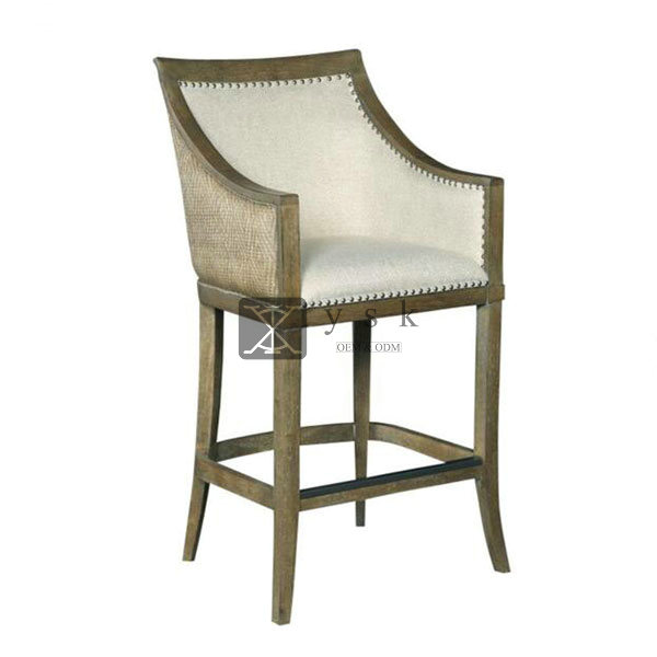 BC-336 Low Backrest Solid Wood French Design Bar Chair With Footrest